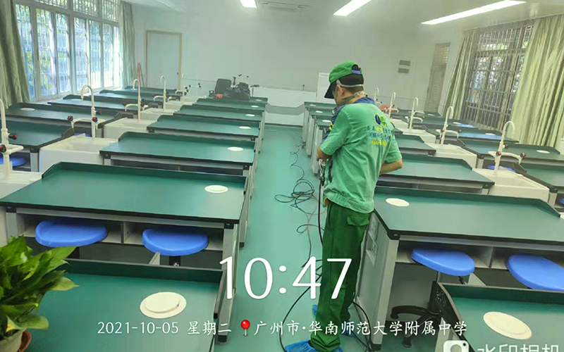 2021年10月华师大附属中学初中部受邀优吸环保为其学校室内空间做整体的甲醛治理服务,(优吸环保是室内环境治理行业甲级施工资质单位和室内环境污染治理甲级资质企业),公司采用专自主研发的高压雾化喷雾机设备,在室内治理过程中,针对室内所有物体表面,立体面,空间(床、沙发、窗帘)等做全方位 360°专业雾化工艺处理。